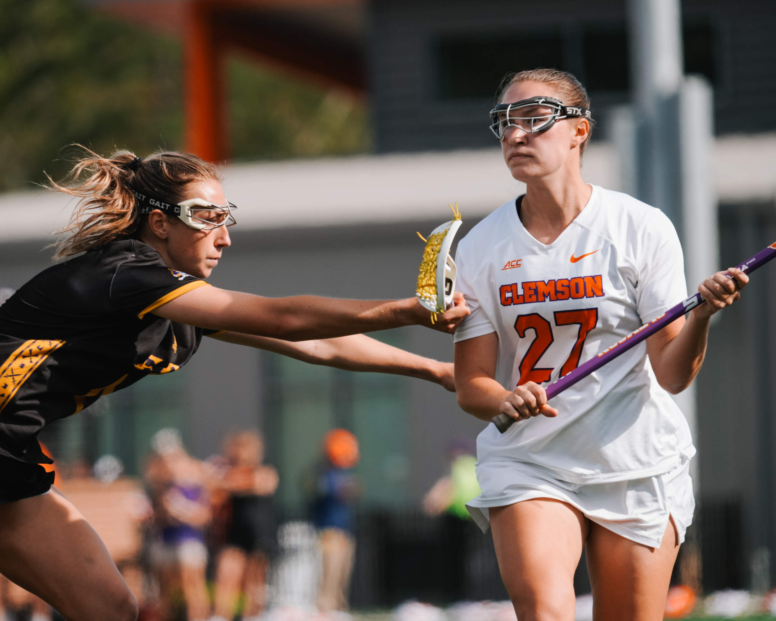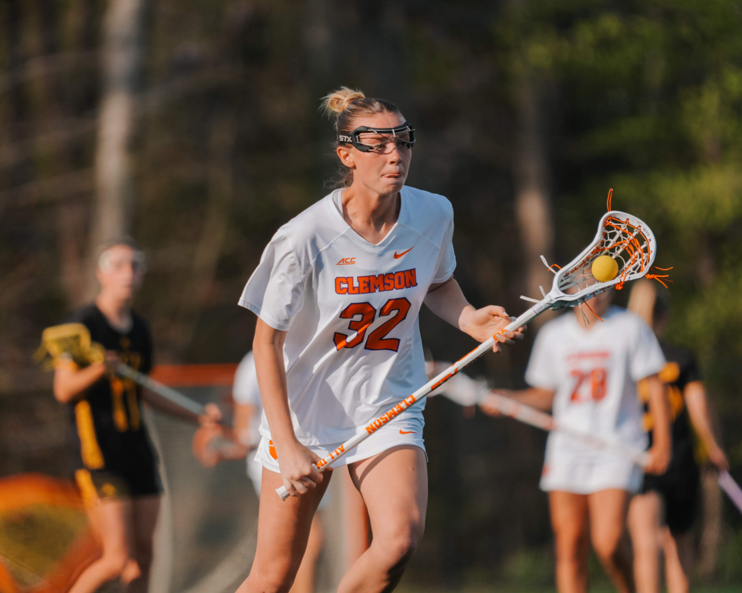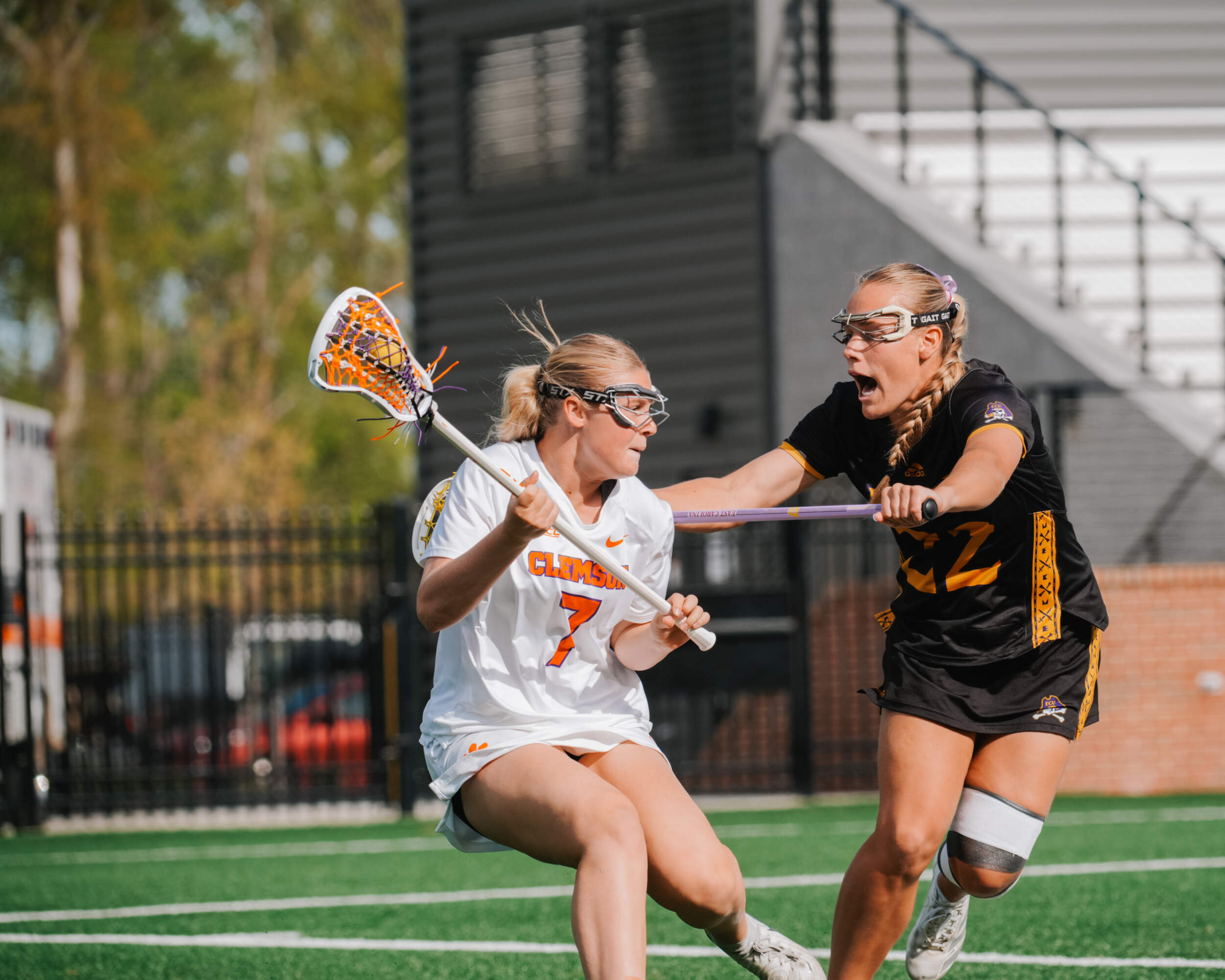 CLEMSON, S.C. – Kayla MacLeod broke the tie between her and Hanna Hilcoff to become Clemson’s all-time leading goal scorer as the No. 15 Clemson Tigers (10-4, 4-2 ACC) defeated the East Carolina Pirates (3-7, 1-1 AAC), 15-4, at the Clemson Lacrosse Complex on Tuesday evening.