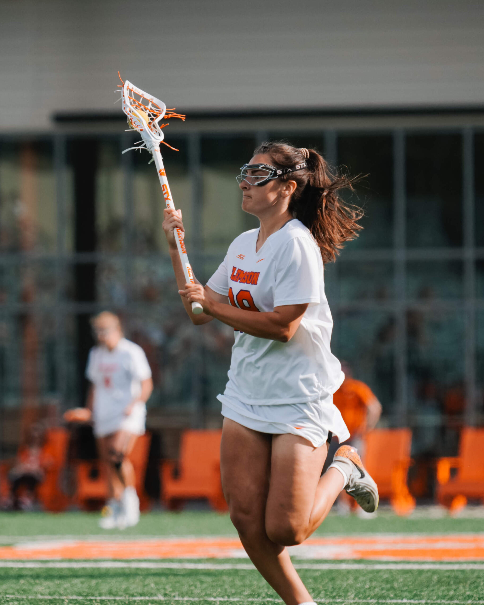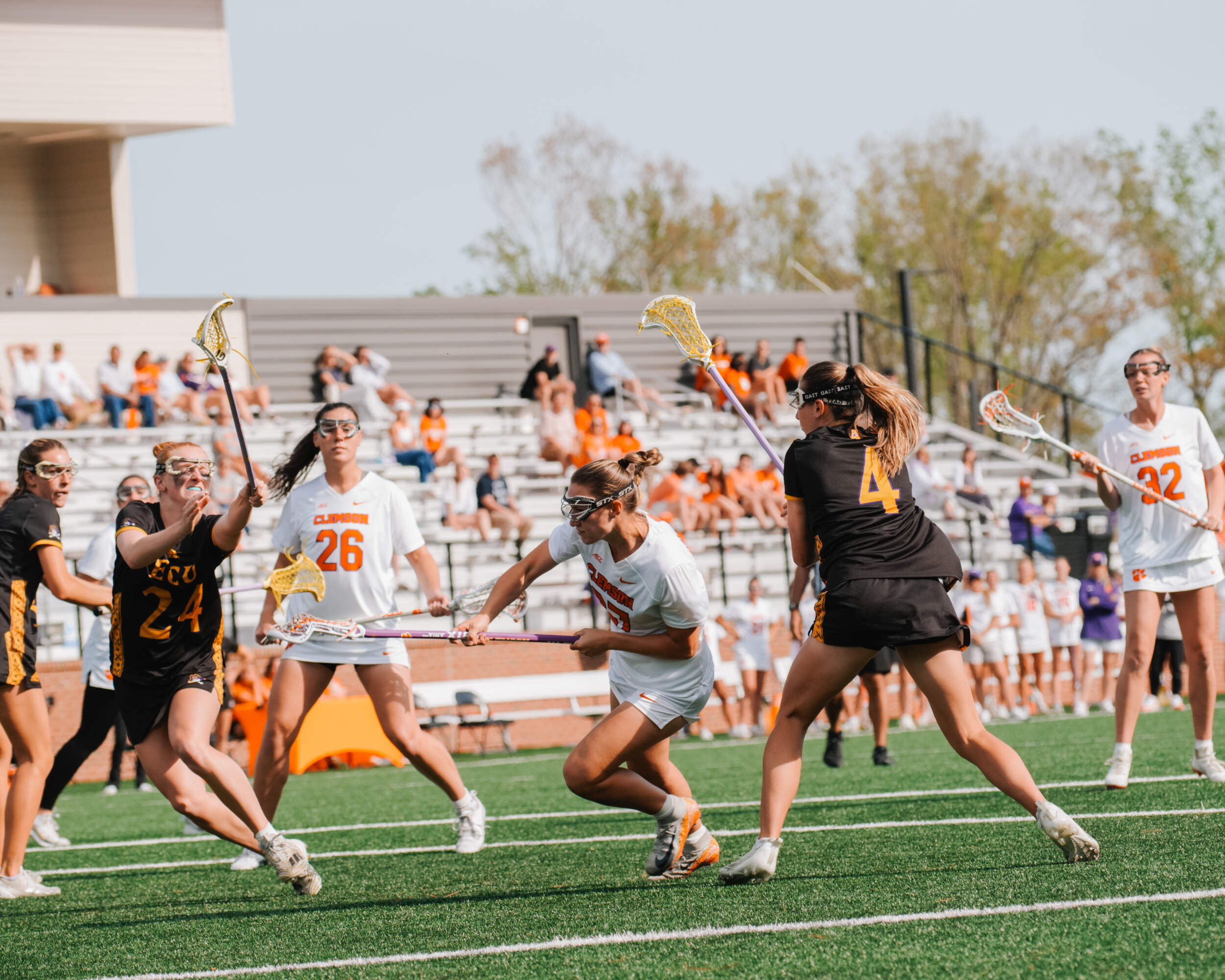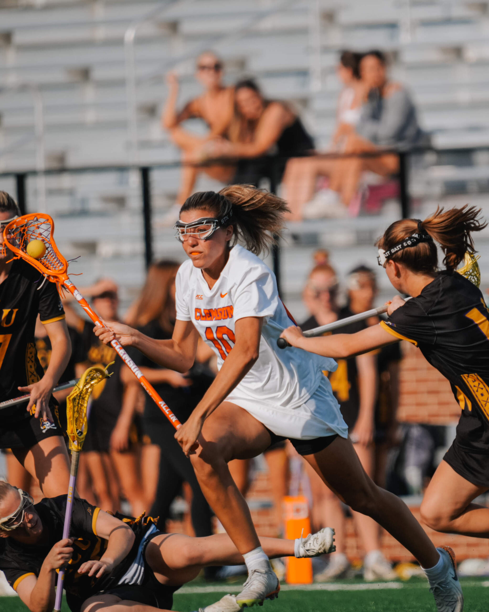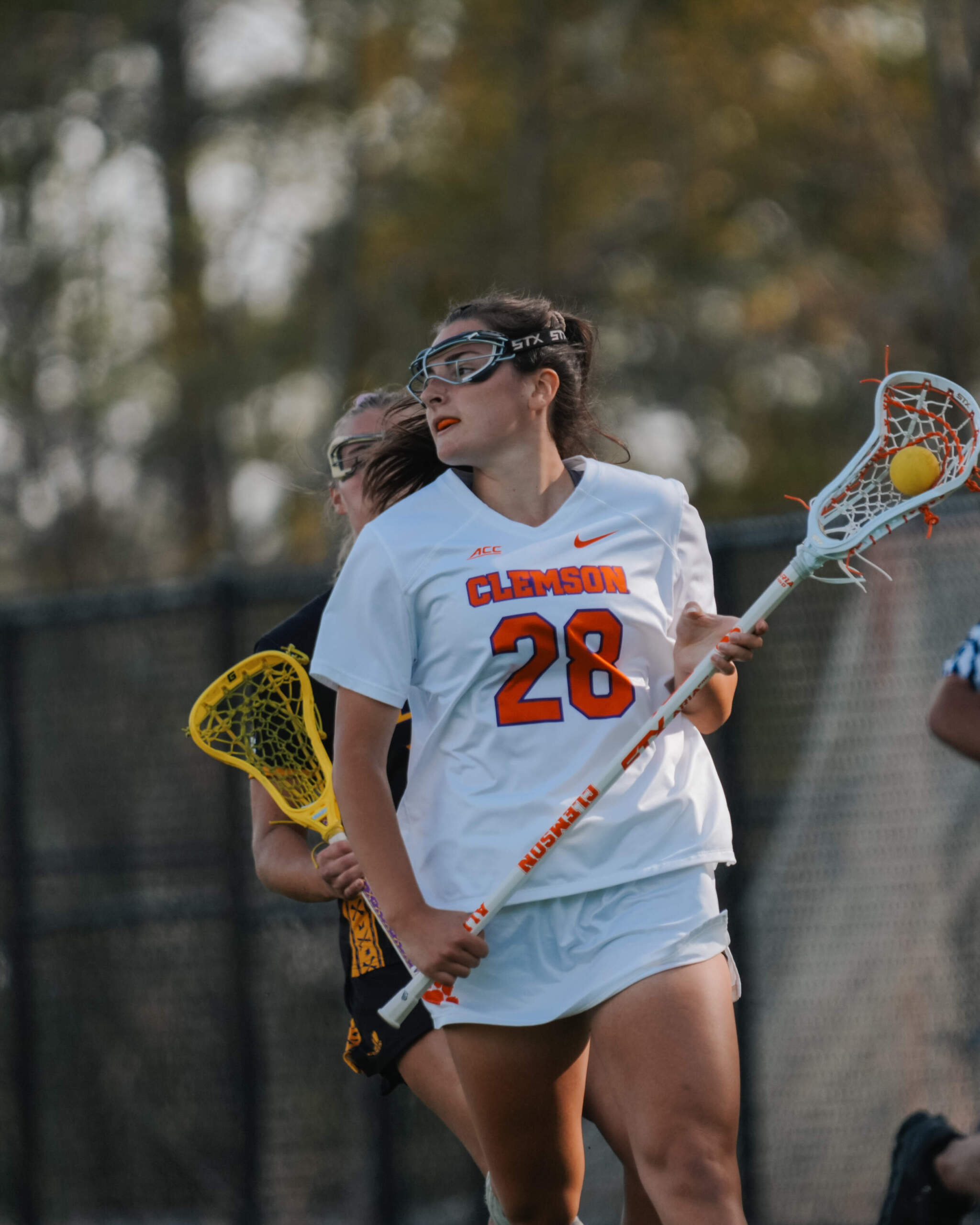 CLEMSON, S.C. – Kayla MacLeod broke the tie between her and Hanna Hilcoff to become Clemson’s all-time leading goal scorer as the No. 15 Clemson Tigers (10-4, 4-2 ACC) defeated the East Carolina Pirates (3-7, 1-1 AAC), 15-4, at the Clemson Lacrosse Complex on Tuesday evening.